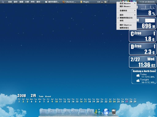 其實 ÜberIcon 是之前所介紹的 RocketDock 的姐妹作,而它的效果就是把滑鼠雙擊的動作加上一些特效,安裝完之後在系統列會出現 ÜberIcon 圖示,右鍵點選就可以做一些細部調整,這款軟體也支援繁體中文喔。